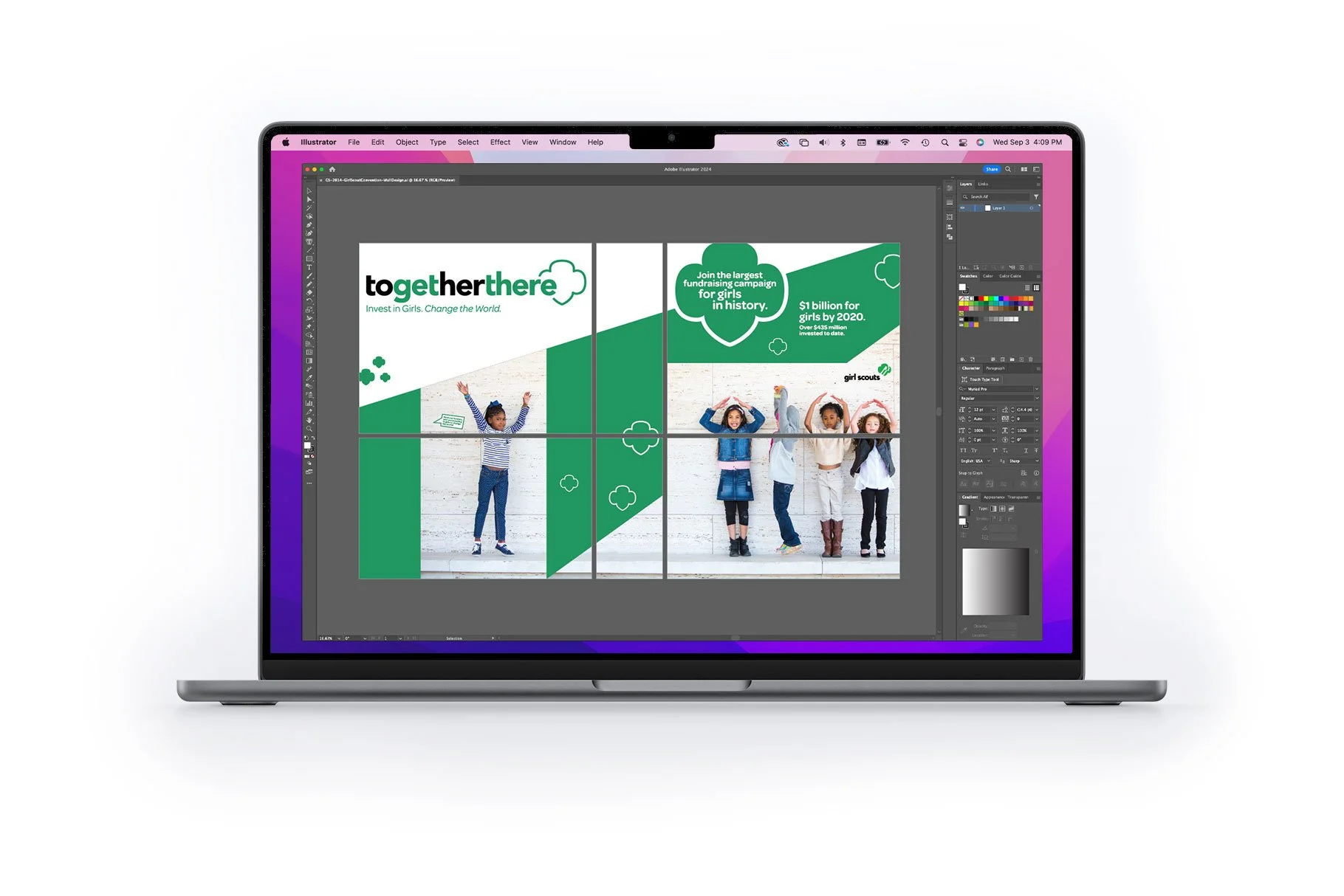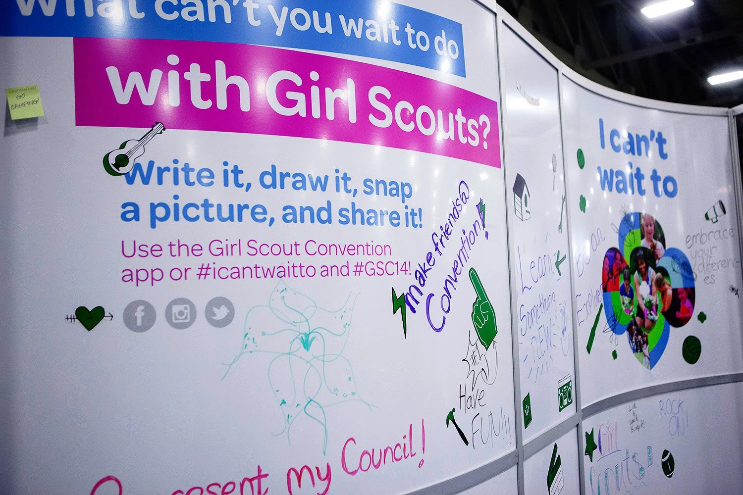 Worked with the design team at Girl Scouts to create large scale environmental graphics, interactive exhibits, banners, posters, and other marketing materials for the Girl Scout National Convention in Salt Lake City Utah.