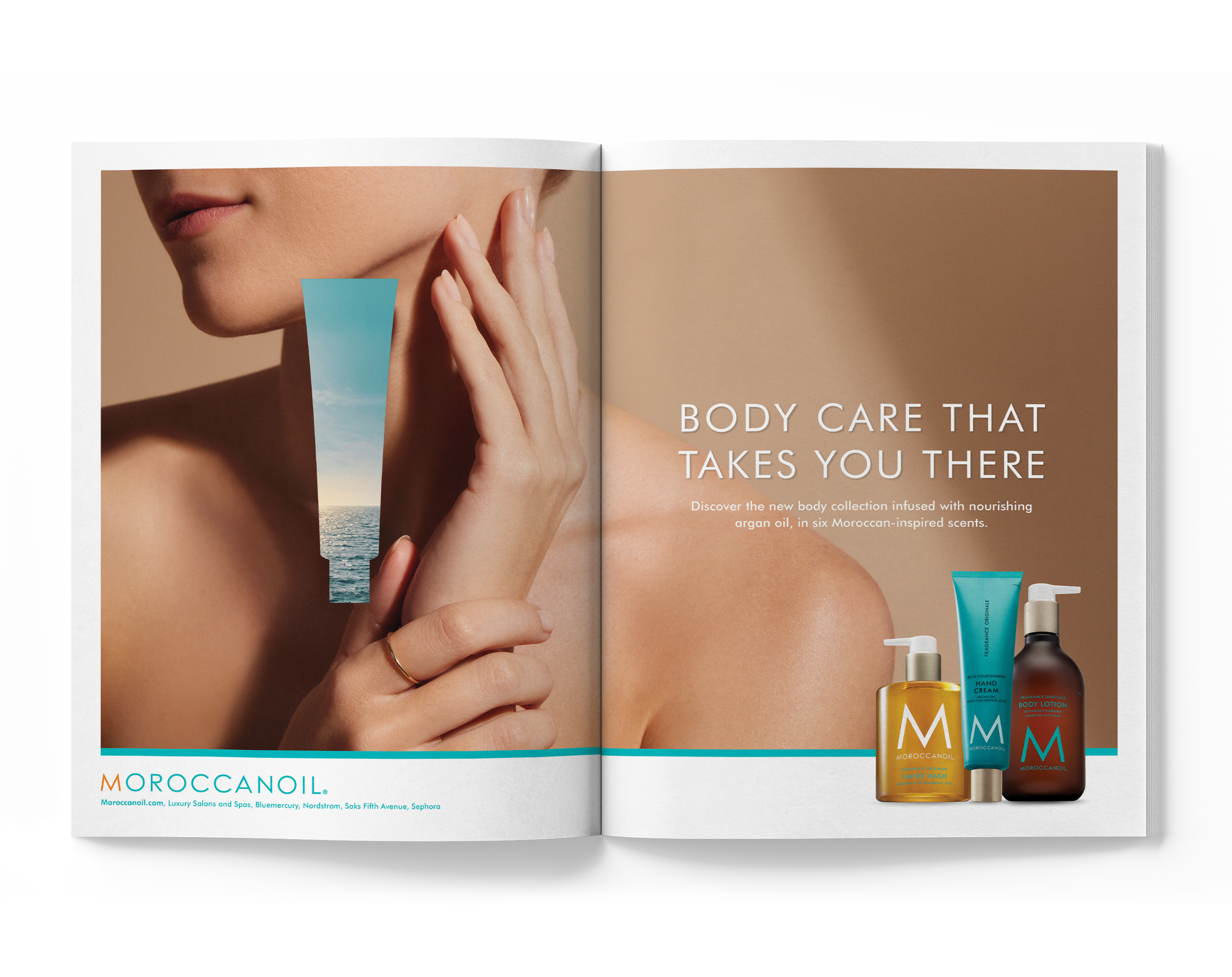 A redesign & expansion of the Moroccanoil Body Products. Five fragrances, each with unique fragrance notes. The redesign includes ingredient, environmental and body shots that can be combined in various ways. New packaging molds were created for the hand cream, body lotion, and hand wash. In 2024 & 2025 two new fragrances were added to the line up - Dahlia Rouge & Soleil de Tanger.